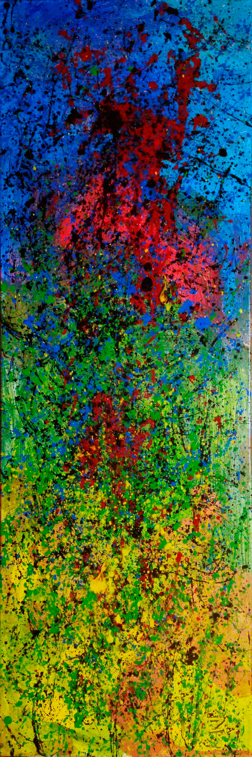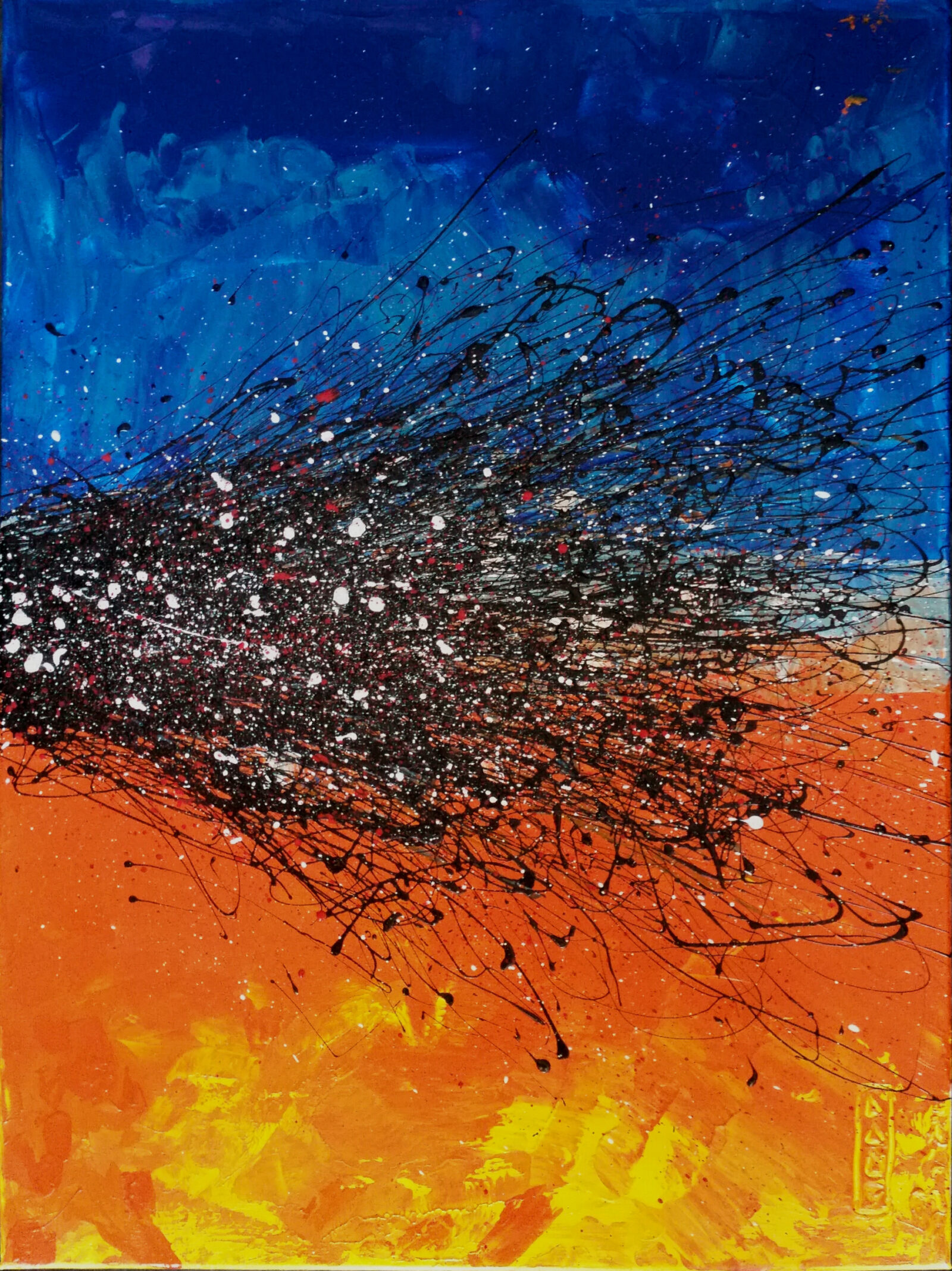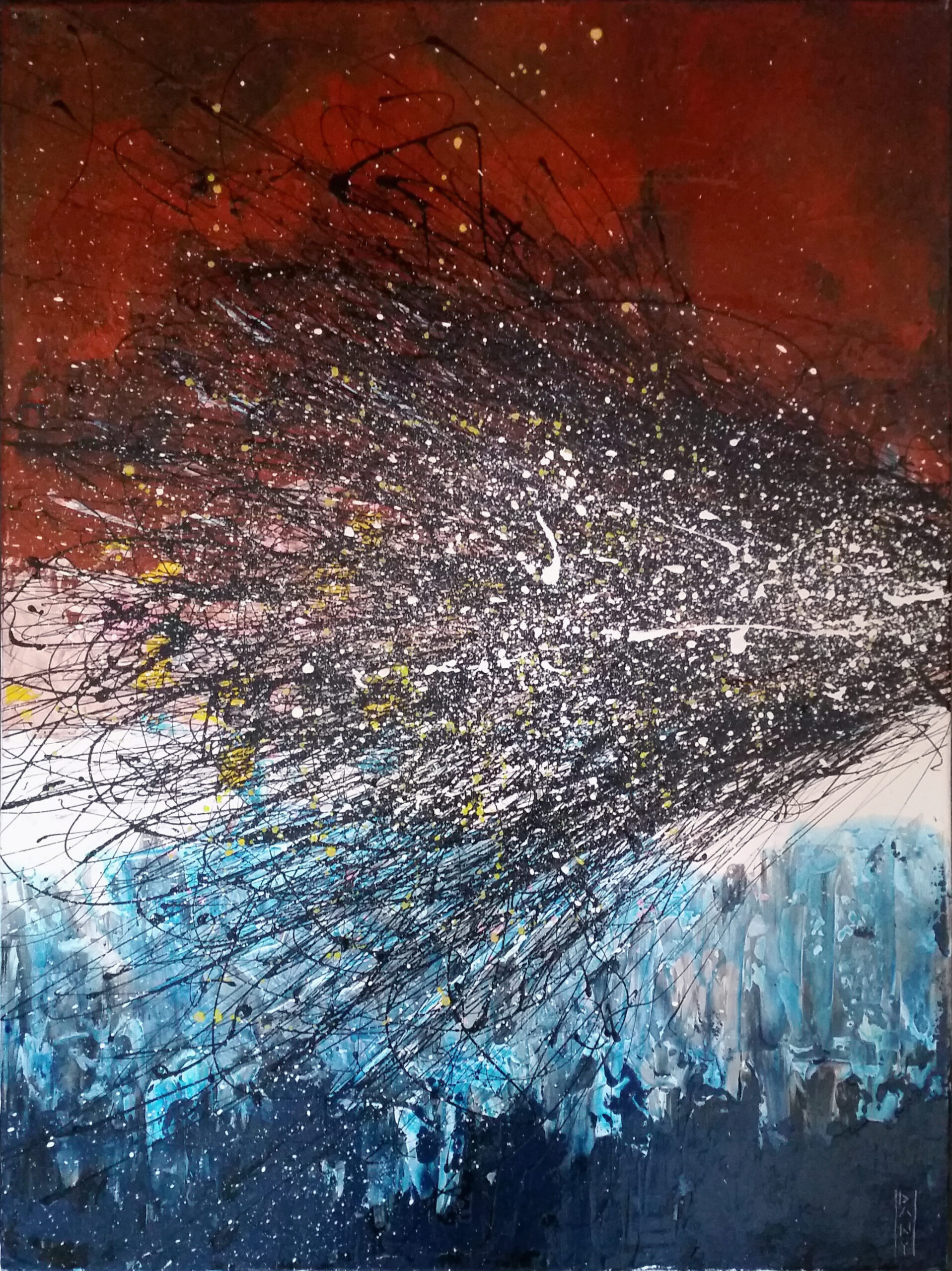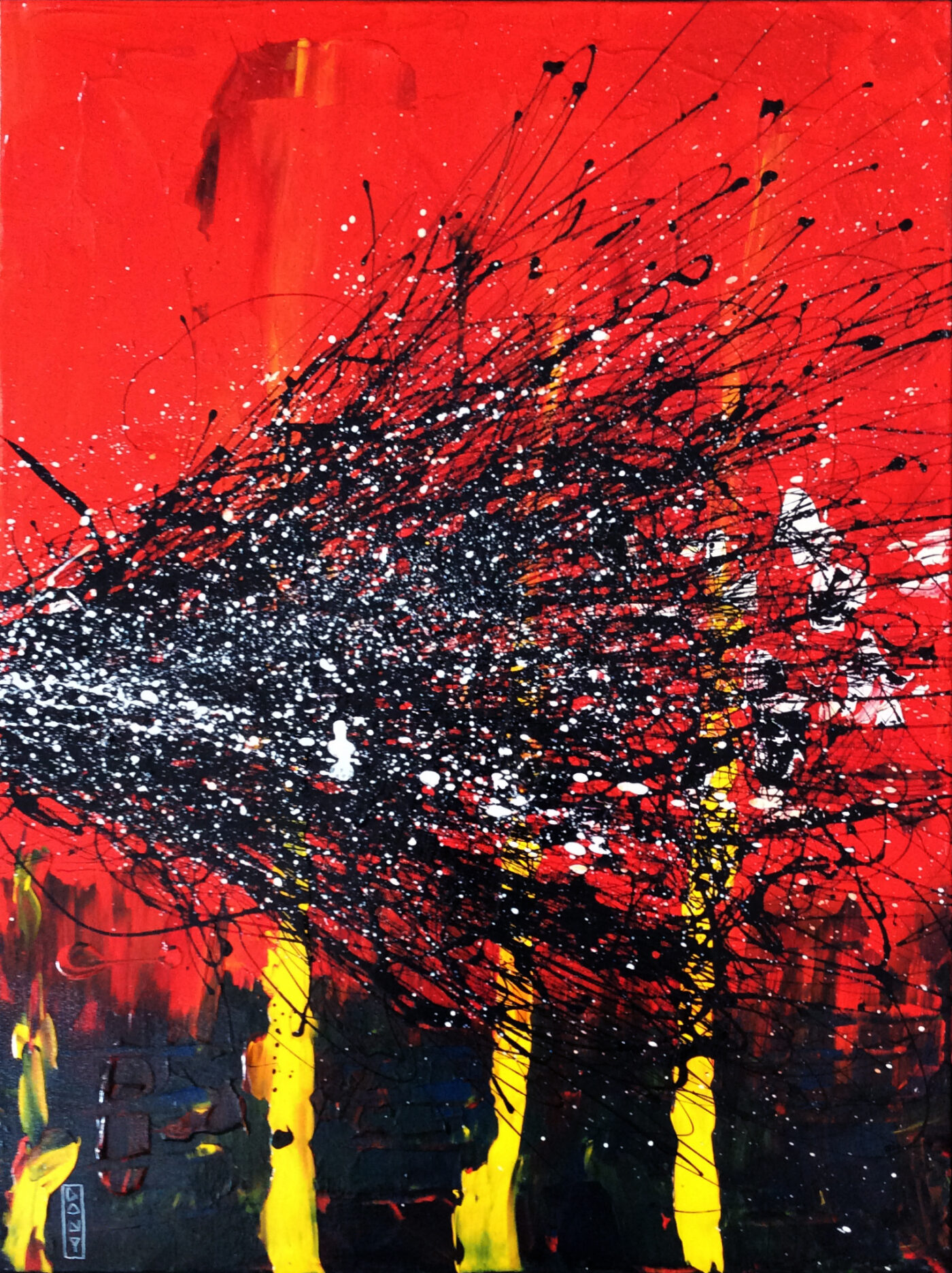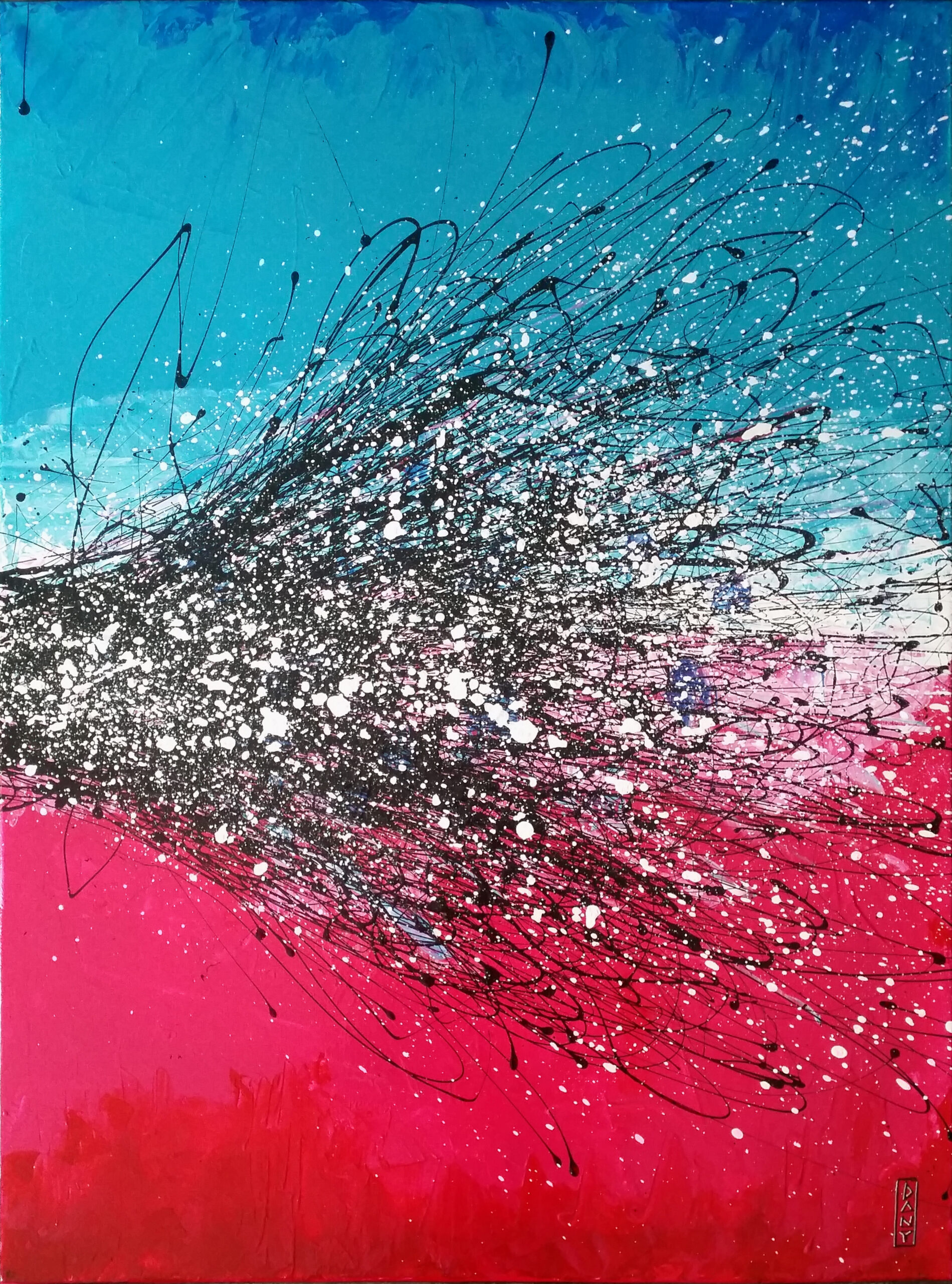 L’œuvre se construit par l’énergie du geste : le dripping et les projections accidentelles (splash) ne sont plus de simples procédés techniques, mais deviennent les vecteurs de cette contamination organique. Rappelant les excroissances et les mutations biomécaniques les plus radicales, ces masses d’une densité inquiétante colonisent l’espace en structures filamenteuses et en amas compacts. Entre fascination et répulsion, le spectateur est confronté à une altérité pure : une matière en pleine expansion qui s’impose par sa seule force cinétique et son dynamisme invasif.