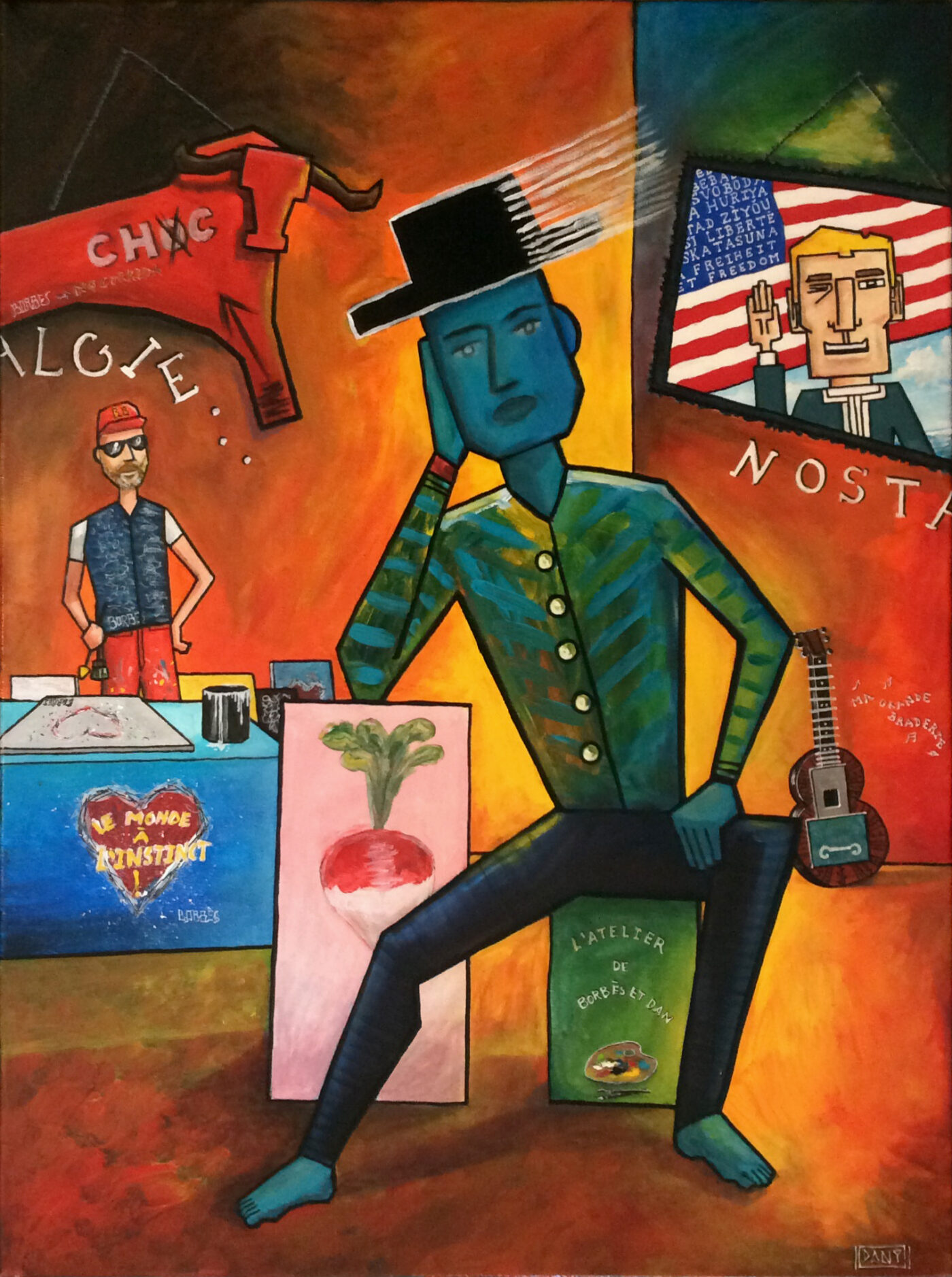 La série « Gueules Carrées » s’établit comme un véritable laboratoire pictural où Dany Alleman orchestre la cohabitation de langages historiquement divergents. Dans une même œuvre, le réalisme, l’impressionnisme, le cubisme et le fauvisme cessent d’être des catégories pour devenir des outils de précision. Cette fusion, loin d’être une cacophonie, tend vers une évidence plastique où l’équilibre des styles devient le garant de la profondeur du sujet.